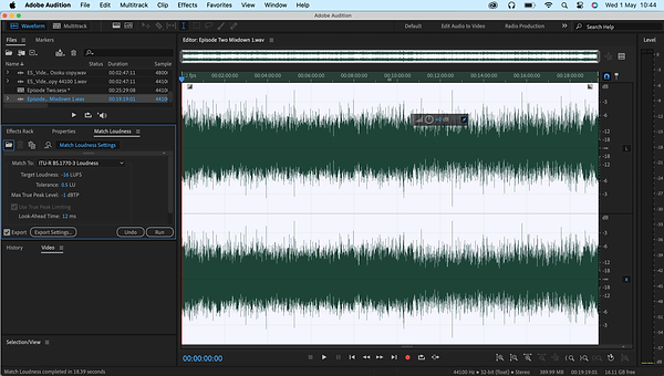 After I Had Done This, A Panel Popped Up For This Where The Effects Rack Would Usually Be. I Then Dragged And Dropped The New File I Had Created Into The Match Loudness File Box, Then I Clicked On The Run Button So I Could See What The Audio Level Of My Podcast Was At That Moment.