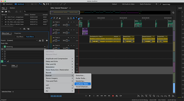 Once I Had Done This I Then Moved Onto The Next Effect, This Was An Effect That Allowed Me To See What Audio Levels That I Needed For A Specific Podcast Listening Platform And What My Audio Levels Were Currently At. To Do This I Went To The Effects Rack For The Mix Track And Selected Special Which Came Up With A Drop-Down Menu Where I Chose Loudness Meter.